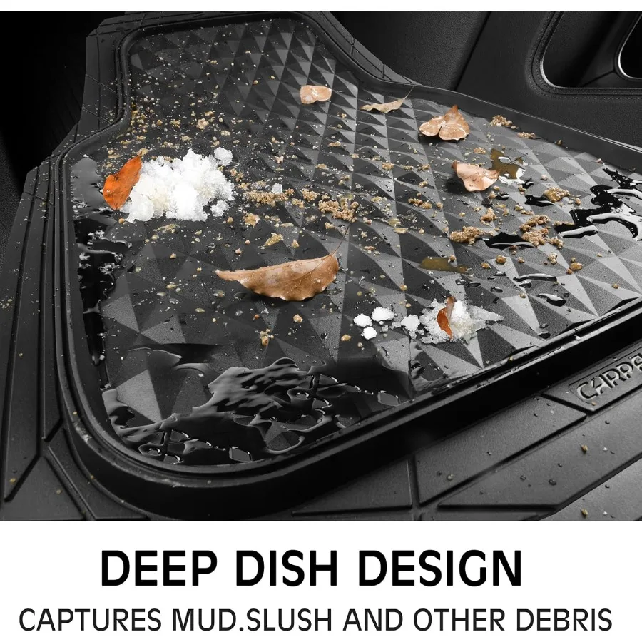 3 Row Deep Dish Heavy Duty Rubber Car Mats: All-Weather Universal Fit