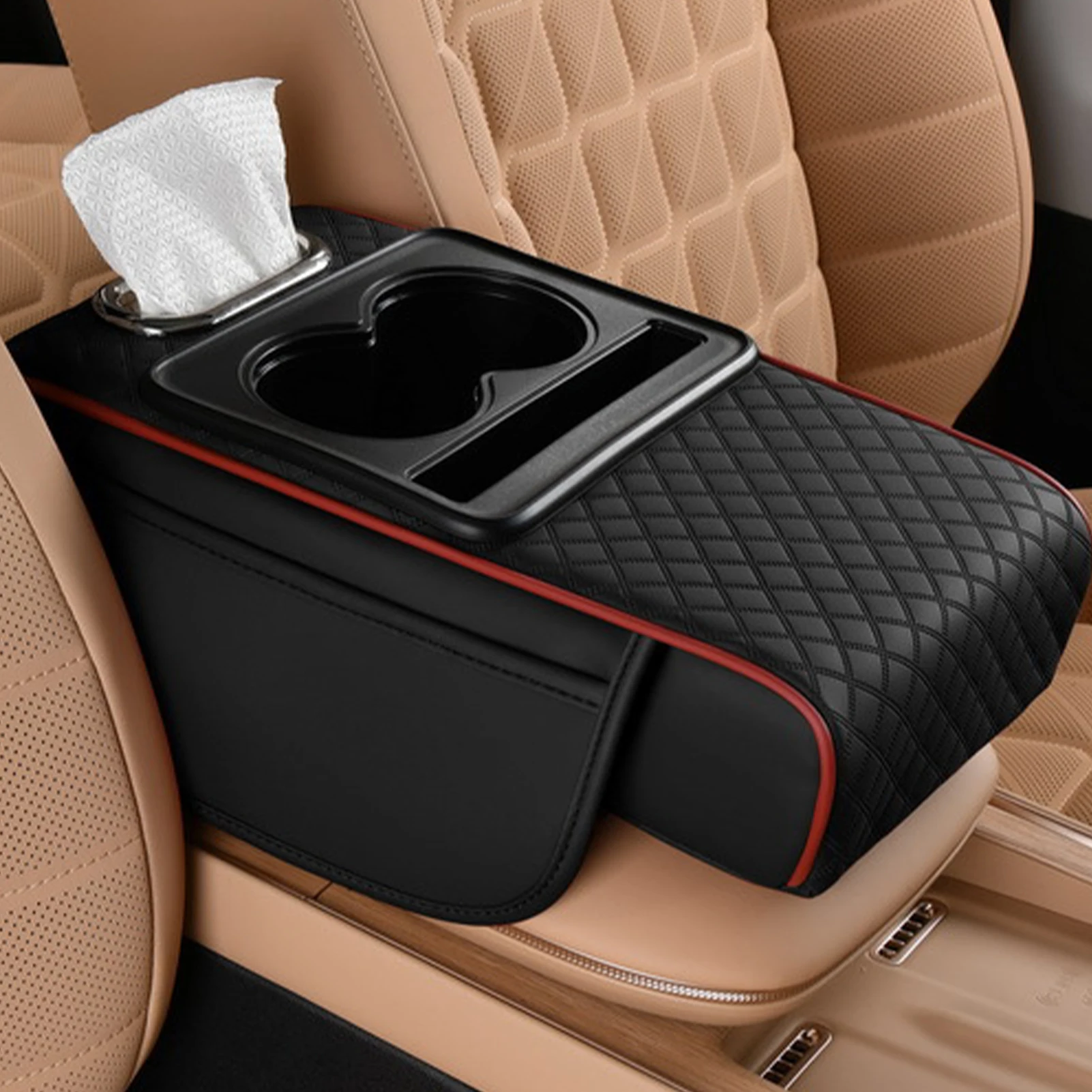 Universal 4-in-1 Car Armrest Heightening Cushion with Cup Holder & Tissue BoxUniversal 4-in-1 Car Armrest Heightening Cushion with Cup Holder & Tissue Box